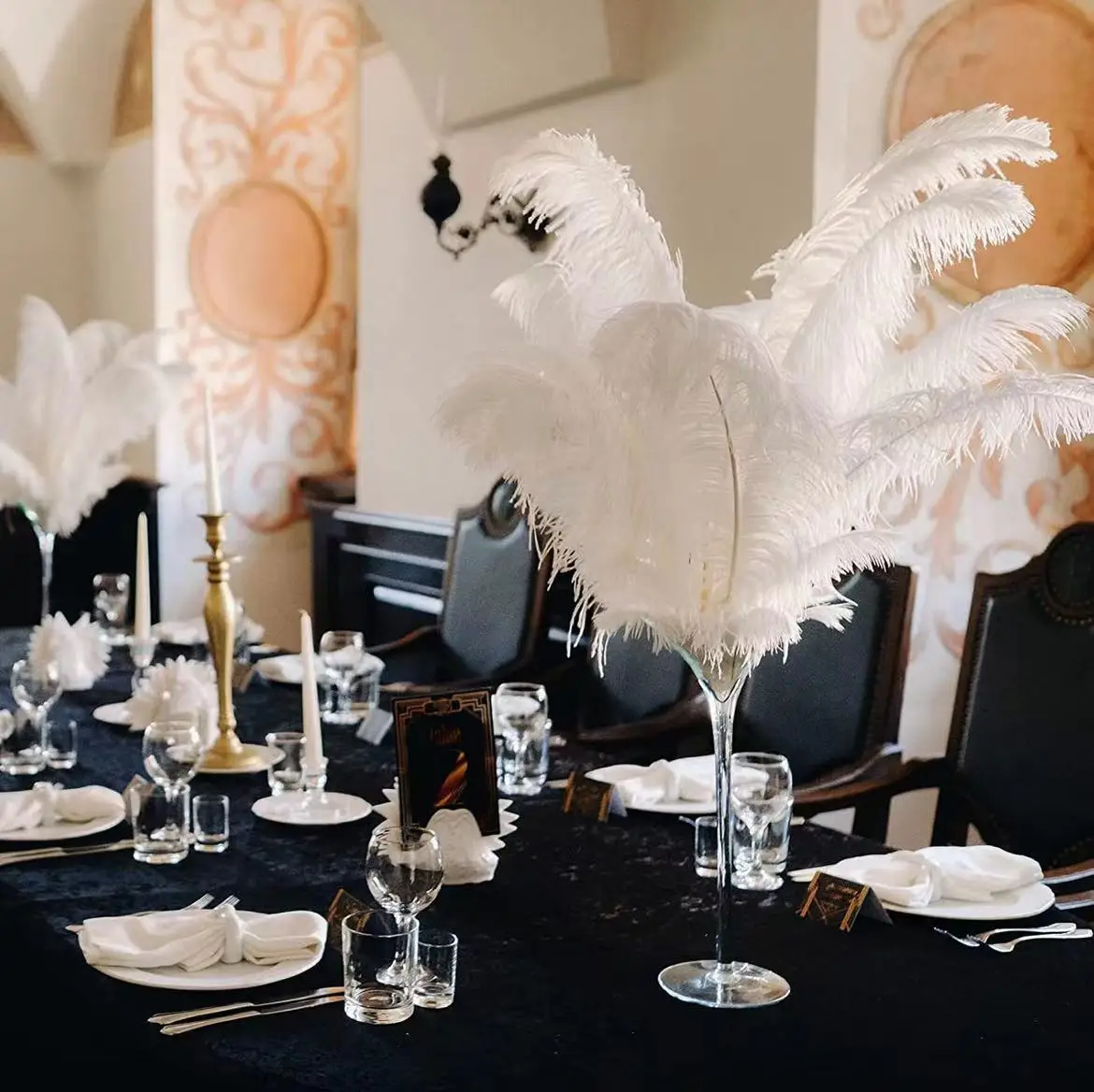 10PCS 15-60cm Big Ostrich Feathers White Ostrich Feather Plumes Carnaval Table Centerpieces Party Wedding Accessories Decoration