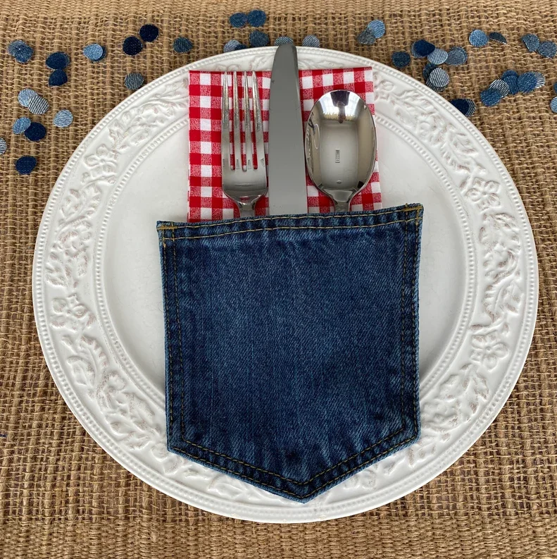 This listing is for denim pockets cut from upcycled jeans perfect for your party or event.