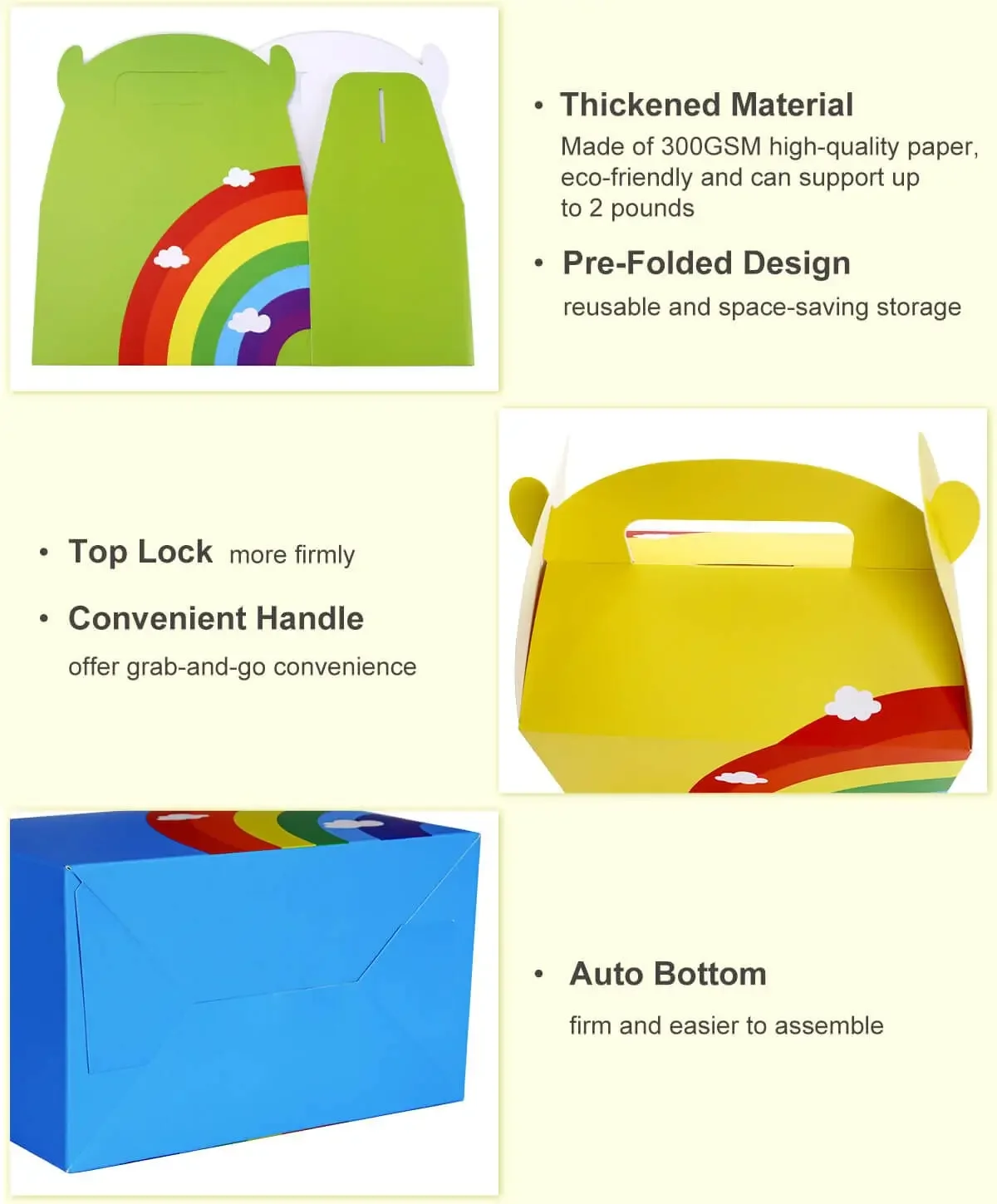 Easy to Assemble Party Favor Boxes - The Paper Gift Boxes are easy to assemble with a quick pop-up structure,even for kids to get it completely assembled by themselves. Excellent for all event party favor boxes, perfect for gift-giving at events including weddings, birthday parties, baby showers, bridal showers, food boxes, events celebrations, etc.