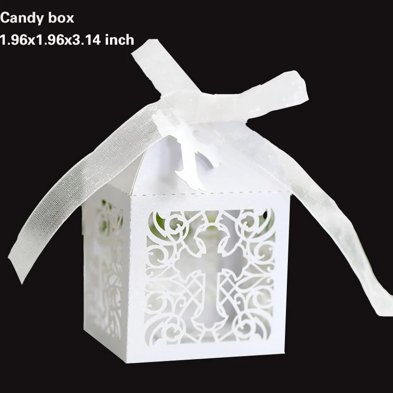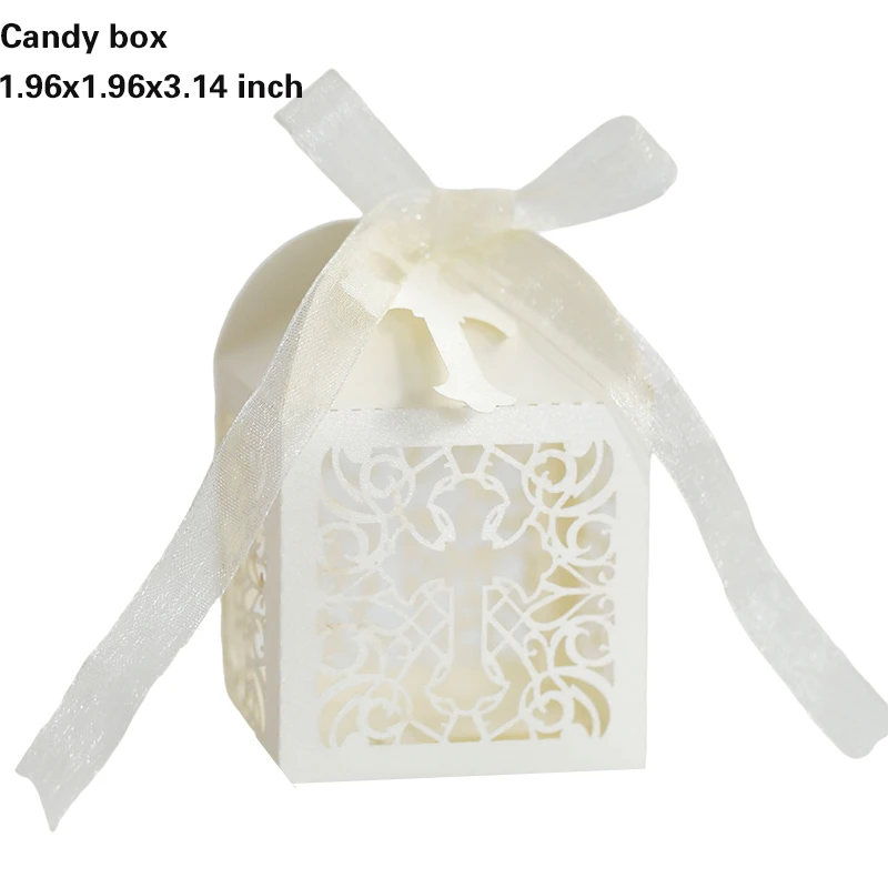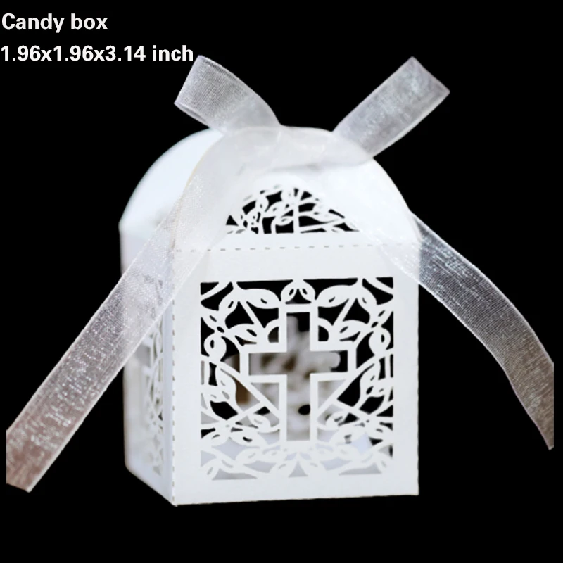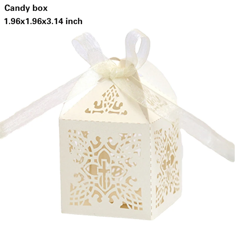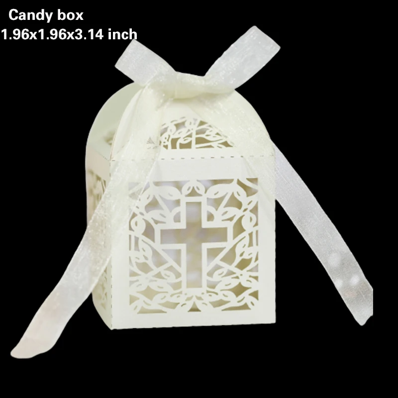 20/30/50PCS Cross Carriage Laser Cut Candy Boxes Wedding Favors Gifts Box Communion Christening Easter Baby Shower Party Decor