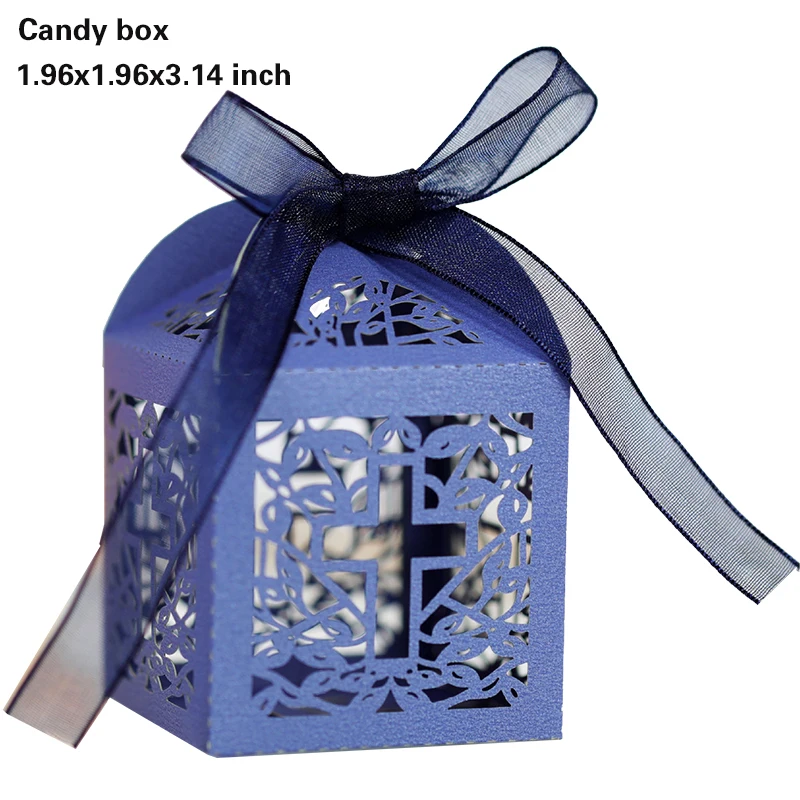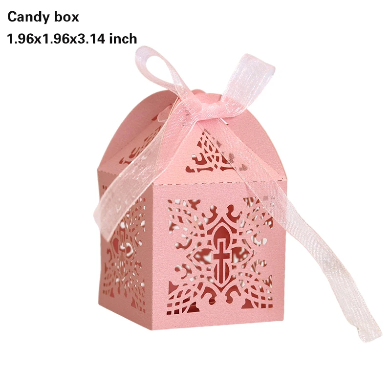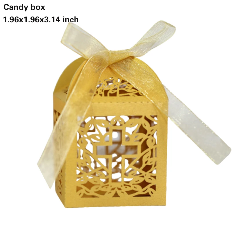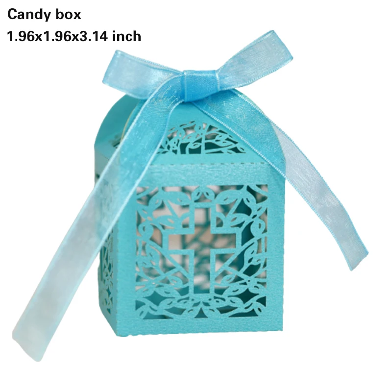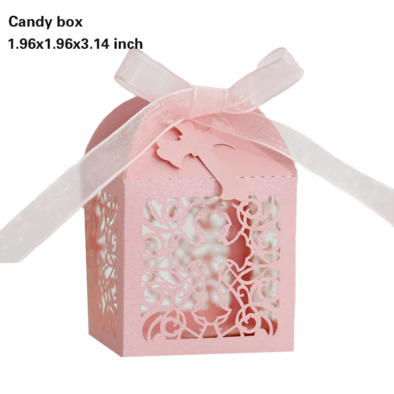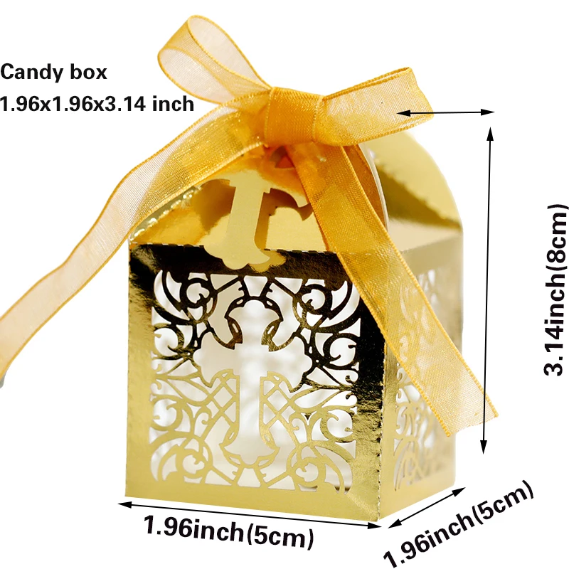 20/30/50PCS Cross Carriage Laser Cut Candy Boxes Wedding Favors Gifts Box Communion Christening Easter Baby Shower Party Decor