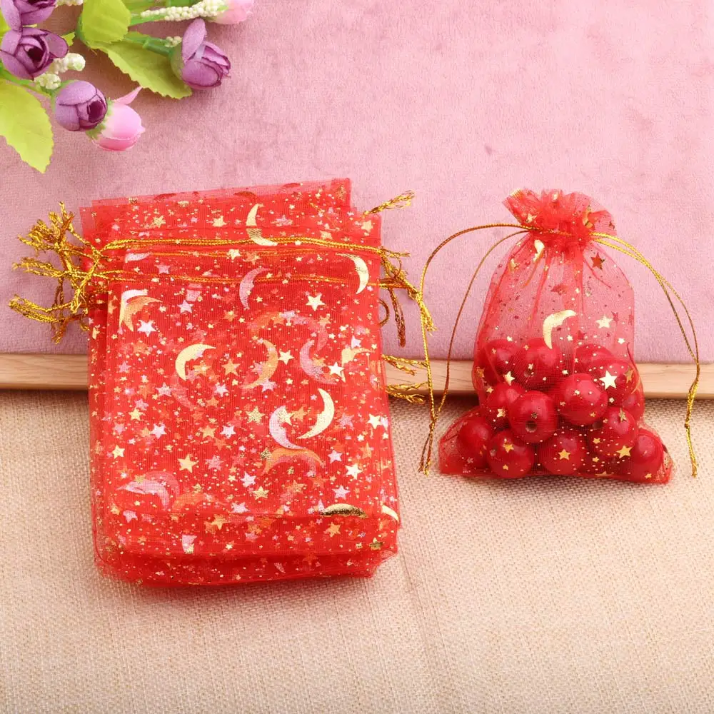 50 pcs/lot Moon star organza gift bag 7x9 9x12 10x15cm multicolor gifts bags for wedding party candy bag jewelry packing