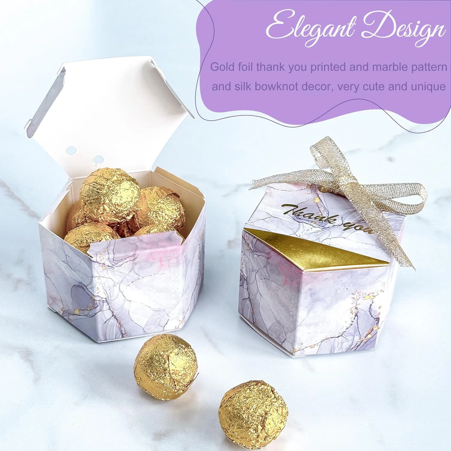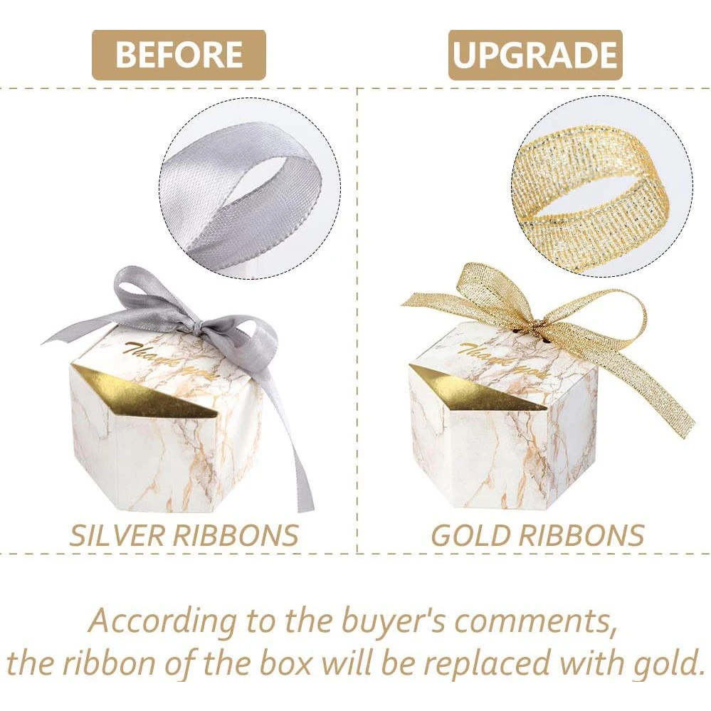 50PCS Small Party Gift oxes wedding favors Boxes , Marble Mini Thank You Boxes with glitter gold Bow ribbon