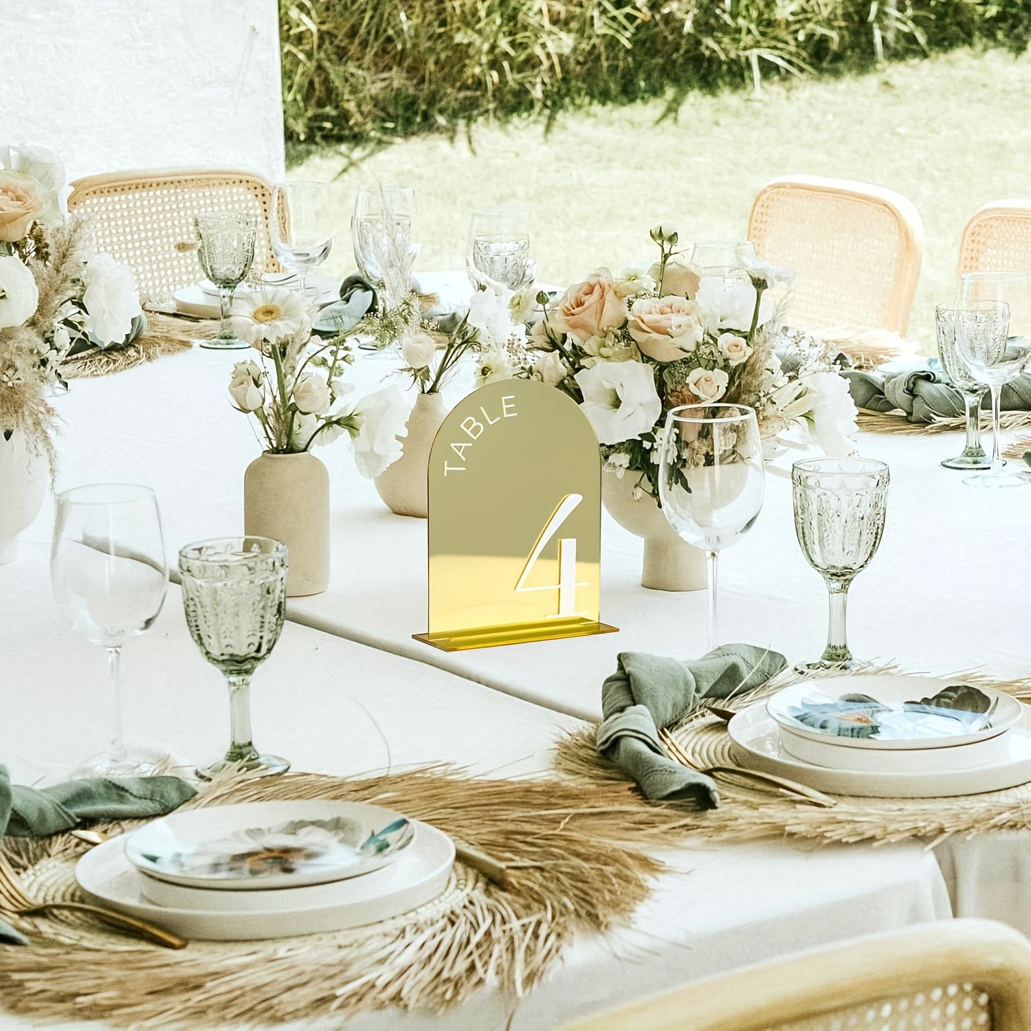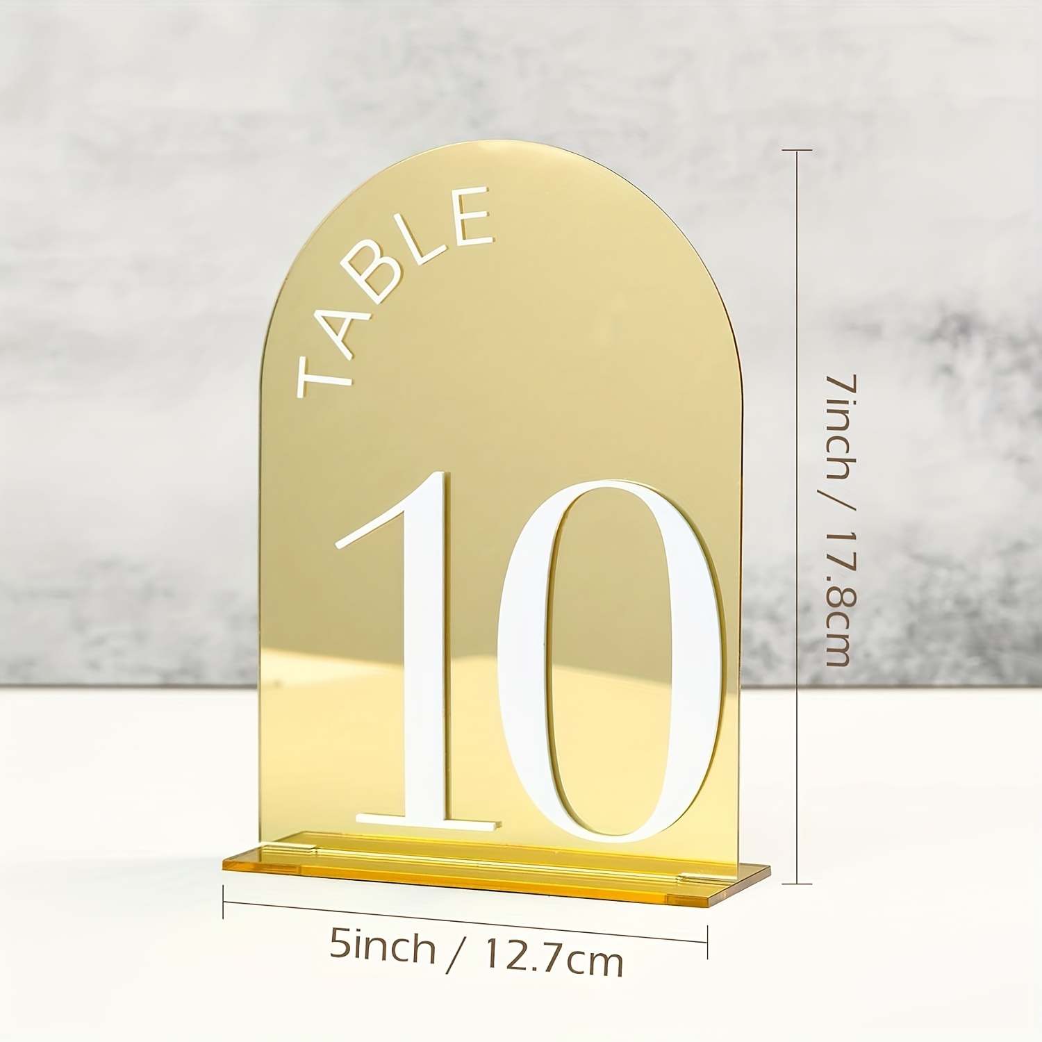 Golden Arch-Shaped Number Table Sign 1-10 with Stand – 10cm x 15cm Acrylic Desktop Holder Featuring Elegant Typography,